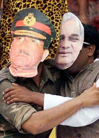 前インド首相バジパイ氏とパキスタン総統の顔写真パネル