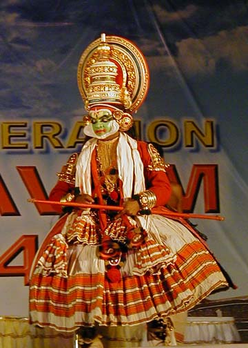 ちょうどカタカリ・ダンスのパフォーマンスがステージで行われているところだった。 500年の伝統を持つこの舞踊。 独特のコスチュームにメイクを施したダンサーたちの、顔の表情と手の動きが不思議な世界へ誘ってくれる。