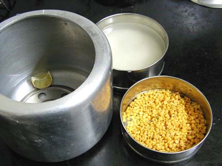 *圧力鍋がない場合は、ダール豆を3‐4時間水につけ、ふたをした鍋で弱火にして30分。