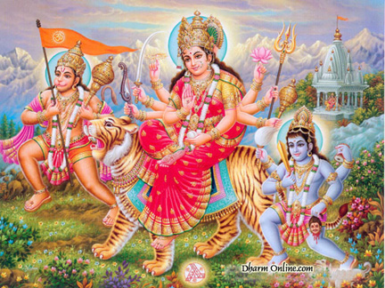 無限の創造、破壊、保護の神シヴァは、3人の女神、ドゥルガー・マー(力の女神)、ラクシュミー・マー(富の女神)、サラスワティ・マー(知の女神)により演出されている。 ナヴラトリ祭りの最大の目的は、ドゥルガー女神が悪魔マヒシャスールに勝利したことを記念すること。