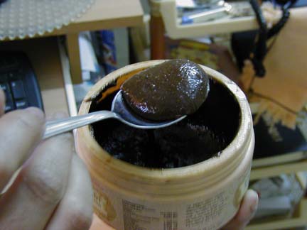 茶色いトローっとしたペースト、甘味があるもののかなりクセのある味で、わたしは嫌いで食べないが。