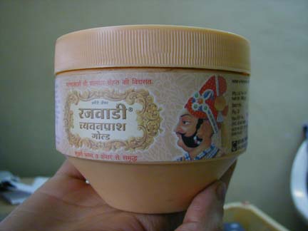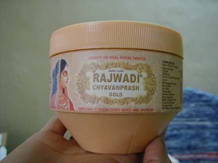Daburのものも有名らしいが、我が家ではUnjha PharmacyのRAJWADI CHYAVANPRASH GOLD(500gm187ルピー)を愛用している。