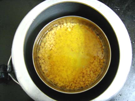 洗ったダール豆と分量の水を鍋に入れ、約20分ほど弱火にかける。