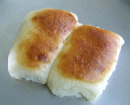 イングリッシュ・マフィンとロールパンの中間のような四角いパン。