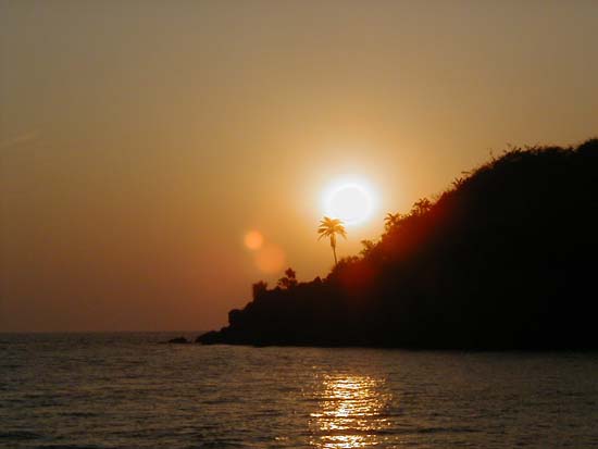 やや疲れてきたので、パナジへ戻る前に、空港すぐ近くのボグマロ・ビーチ(Bogmalo Beach)で、ゆったりと沈む夕日を眺めつつ一休みすることにした。