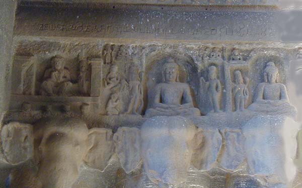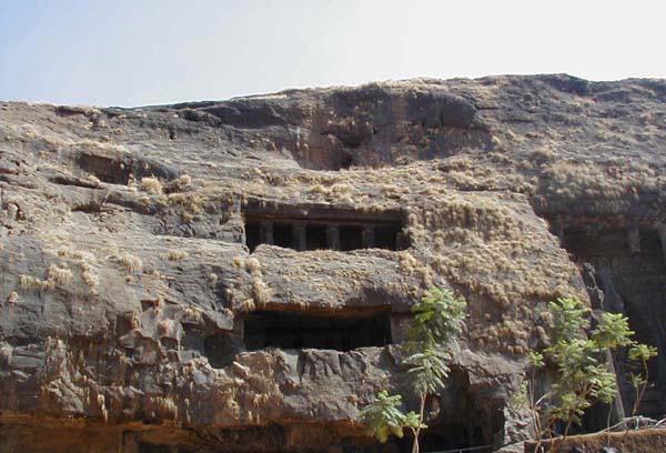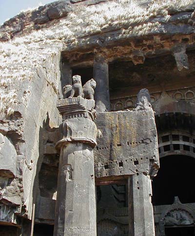 カルラ石窟と同様、ライオンピラー、広いチャイティヤ窟、僧侶の居室ヴィハーラ窟などが見られる。